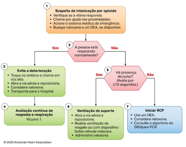 Algoritmo de emergência associada a opioide para profissionais de saúde