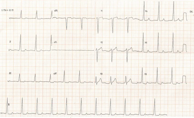 Zoom do mesmo eletro. Notem como a onda P fica colada à onda T devido ao BAV de primeiro grau pronunciado: