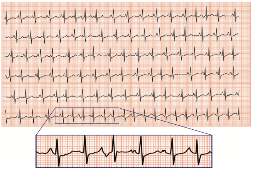 um ECG onde 2 ou 3 batimentos tenham onda P desta forma que dissemos