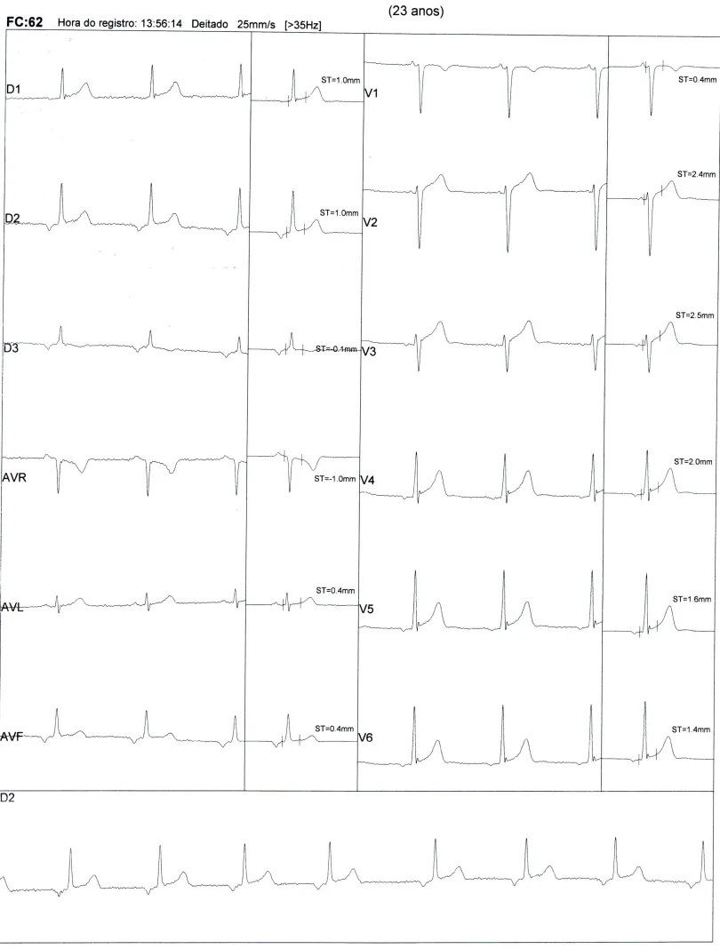 Um alteração que é muito comum encontrar em pacientes jovens é a repolarização precoce, que é um variante do normal. O supra-desnivelamento tem característica de concavidade superior, pode haver empastamento ou entalhe da porção descendente da onda R, e ondas Q profundas e estreitas em derivações precordiais esquerdas.