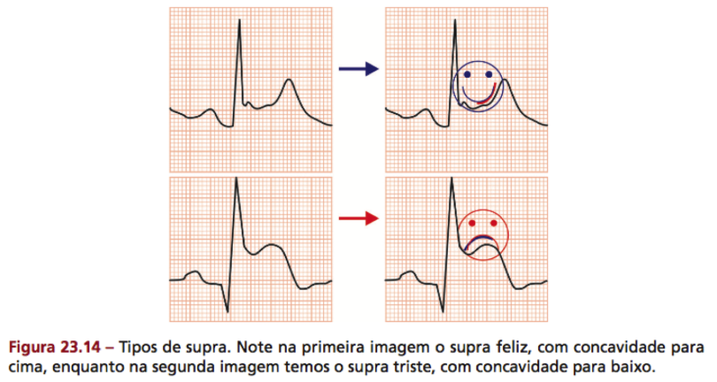 Supra “feliz” = concavidade para cima = pensar em causas benignas (ou em IAM em fase inicial)