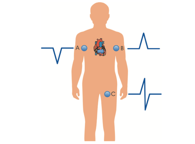Ou seja, através de apenas três eletrodos colocados no paciente, podemos inferir que a energia elétrica que percorre o coração está se movimentando da direita do paciente (nossa esquerda) para o lado contralateral. Se colocarmos mais eletrodos, podemos saber se esta energia está indo para cima ou para baixo, para frente ou para trás etc.