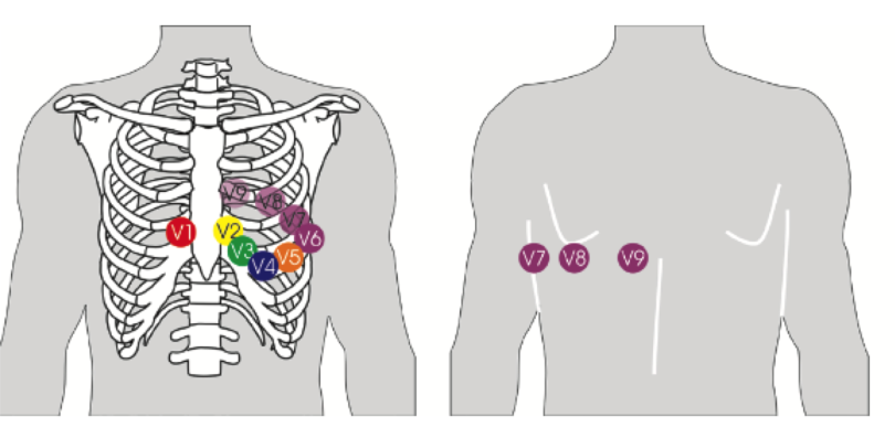 usa-se os eletrodos de V4 a V6 para colocar no lugar de V7 a V9. Aí
