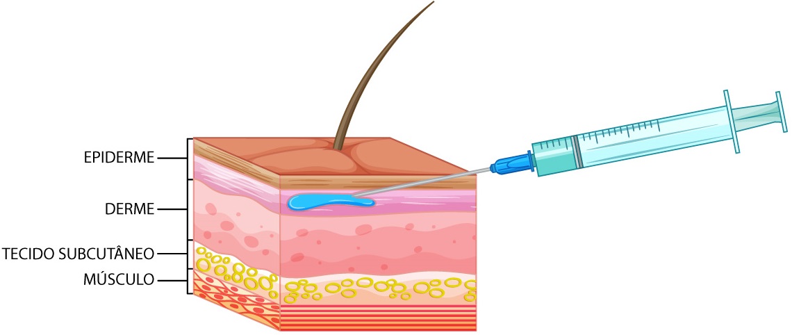 ● Na utilização desta via a solução é introduzida nas camadas superficiais da pele, isto é, na derme.