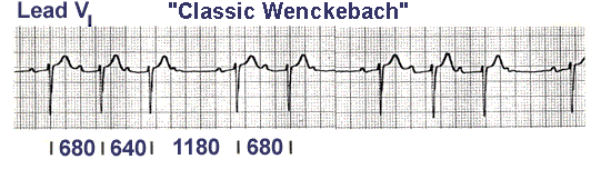 • Intervalo PR aumenta progressivamente até que uma das ondas P não é conduzida