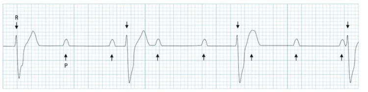 • Ondas P normais precedidas ou não de QRS. Anárquico