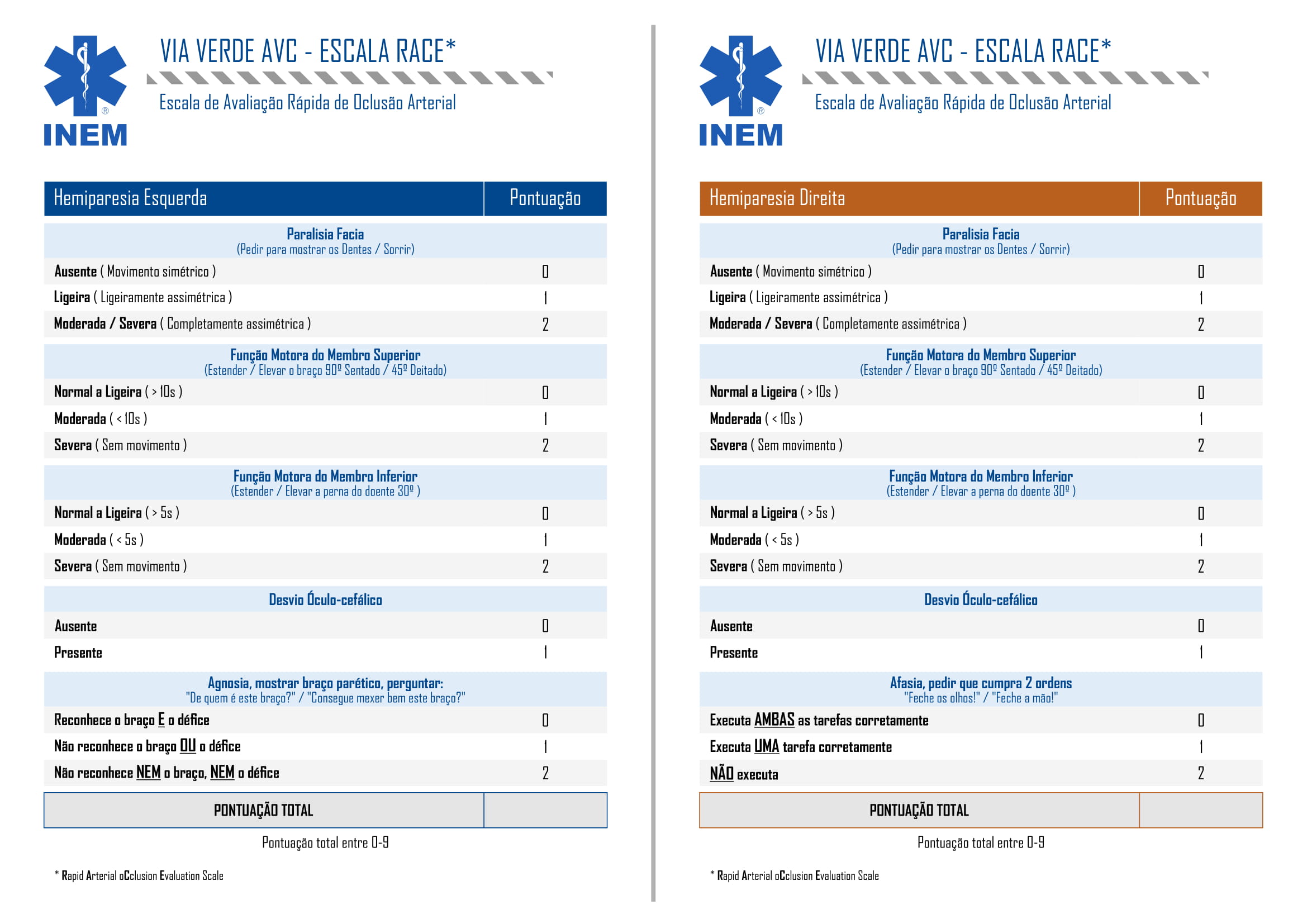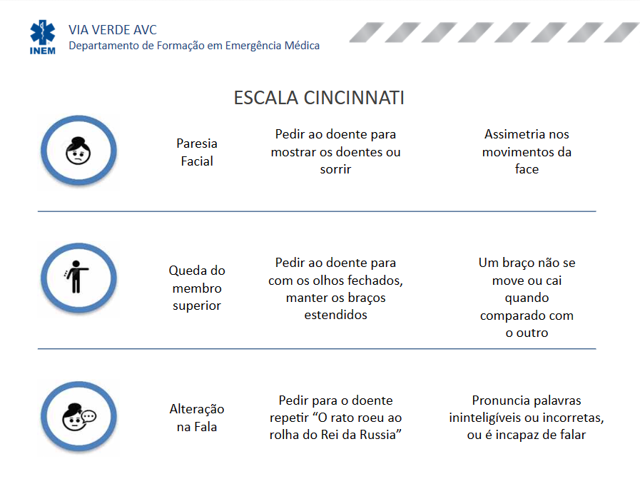 Na presença da instalação dos seguintes sinais, deve suspeitar-se de Acidente Vascular Cerebral (AVC)