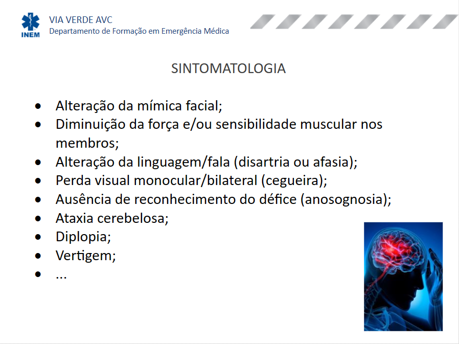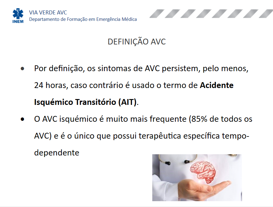 Sintomas de AVC persistem, pelo menos durante 24 horas, caso contrário são considerados Acidente Isquémico Transitório (AIT).
