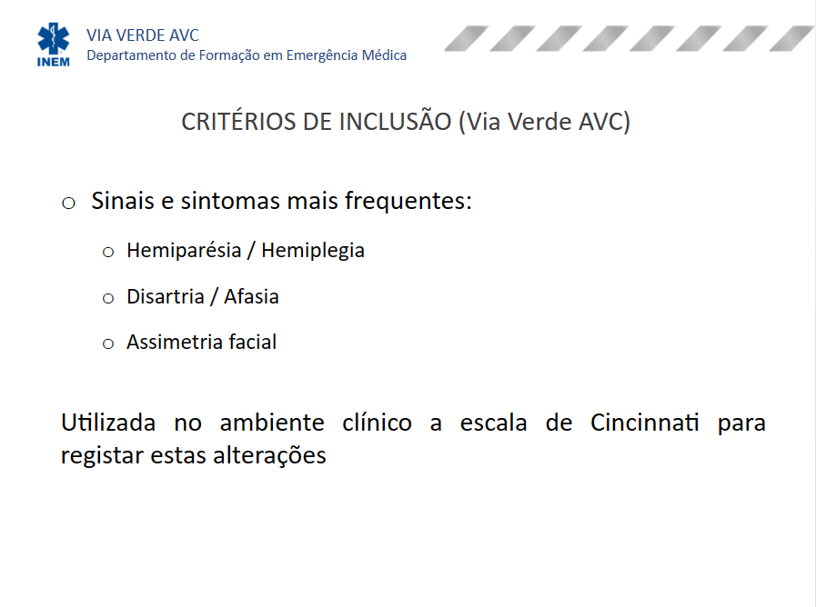 Sistema Integrado de Emergência Médica (SIEM) sobre a Via Verde AVC.
