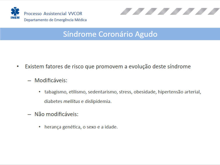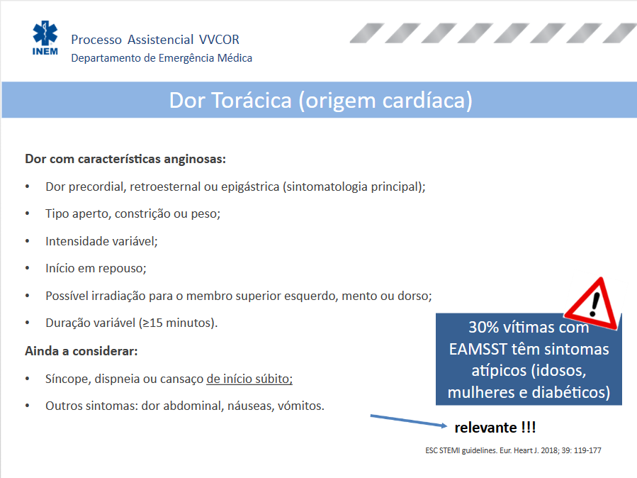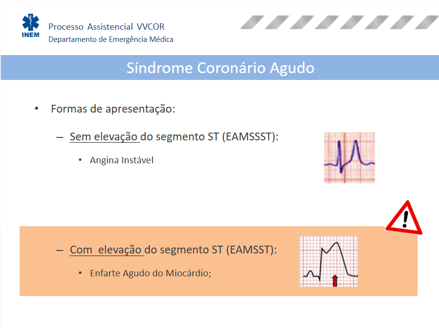 Na presença da instalação dos seguintes sinais, deve suspeitar-se de Sindrome Coronário Agudo (SCA)