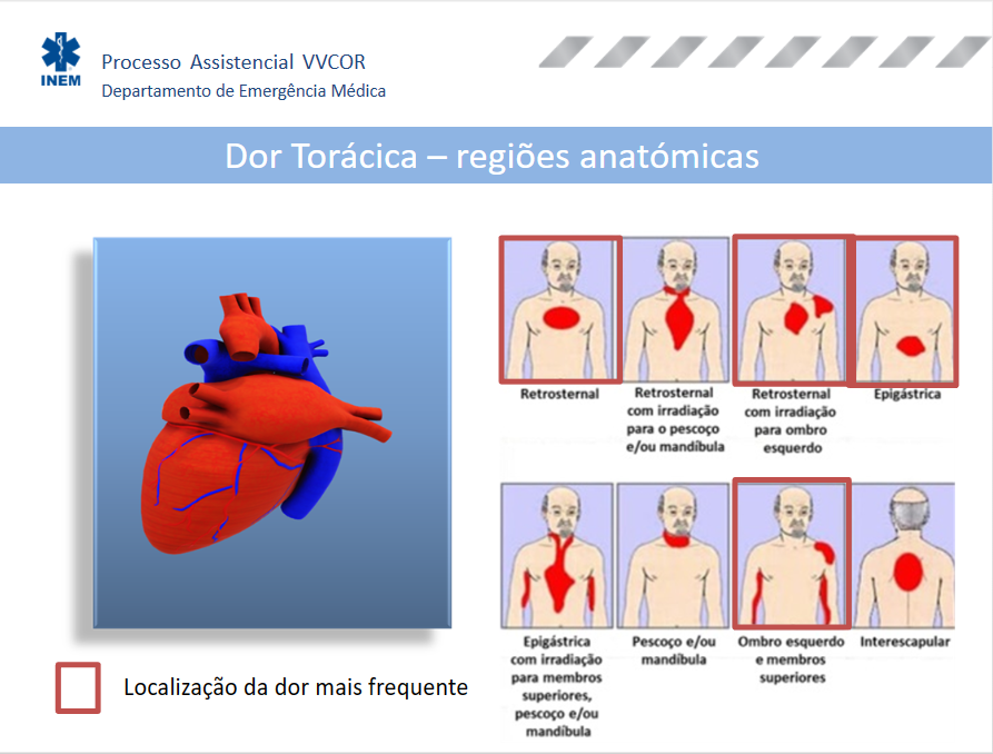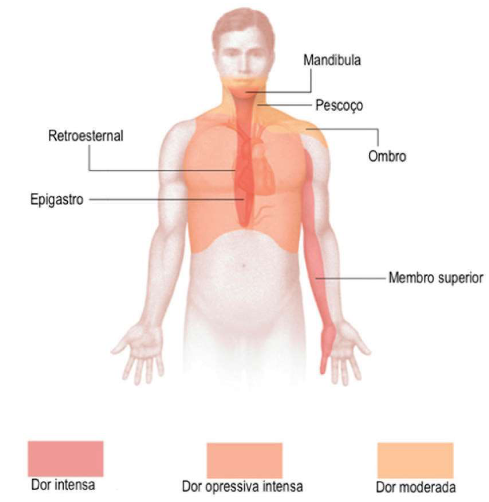 | Retroesternal, contínua na intensidade | Dor | Retroesternal, contínua na intensidade |